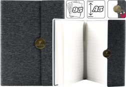 Elegáns irodai jegyzetfüzet mágneses zárral, tökéletes választás személyes és munkahelyi használatra. Kemény kötés és 95 kiváló minőségű krémszínű oldal teszik ezt a jegyzetfüzetet funkcionális és stílusos kiegészítővé.