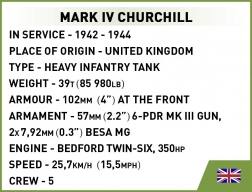 Az ikonikus CHURCHILL harckocsi a második világháború egyik legismertebb szövetséges járműve. Nagyra értékelik erős páncélzatáért, alacsony profiljáért és kiváló terepjáró képességéért. Ez az 1:35 méretarányú készlet hűen adja vissza a valódi jármű részleteit, beleértve a történelmi jelzéseket és a személyzet egyenruháit a precíz nyomatoknak köszönhetően.