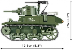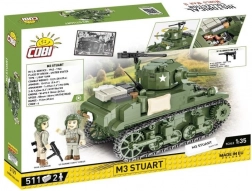 Építse meg a második világháború ikonikus könnyű harckocsiját – a M3 Stuartot 1:35 méretarányban, 511 minőségi elemből. A modell működő lánctalpas futóművet, forgatható tornyot, állítható ágyút, nyitható nyílásokat és részletes, kockákból épített „motort” kínál. A csomagban 2 amerikai harckocsizó figura található kiegészítőkkel, valamint precíz nyomatok, amelyek intenzív játék mellett sem fakulnak ki.