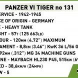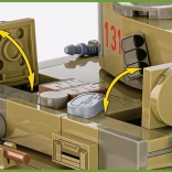 A minőségi, tartós nyomatokkal ellátott elemek nem fakulnak és nem deformálódnak, a működő futómű egyenletes mozgást biztosít a felületen, a nyitható nyílások pedig helyet tárnak fel a standard COBI figurák számára. A készlethez Maybach motor minimodell is tartozik, amely a tank mellett kiállítható vagy a szervizfedél alá helyezhető.