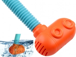 A felszerelés pillanatok kérdése – a tapadókorongok erősen tartanak a kád vagy a csempe sima felületén. Miután az alsó, szivattyús részt vízbe meríted és megnyomod a hasán lévő virág-gombot, a szájból finom zuhanysugár kezd folyni, ami ideális a kíméletes leöblítéshez és a játékos fürdéshez.