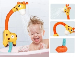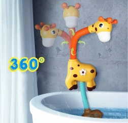 A bájos, zsiráf alakú gyermekzuhany minden fürdést játékká varázsol. A tapadókorongoknak köszönhetően könnyen rögzíthető a kádra vagy a csempére, rugalmas nyaka pedig megkönnyíti a vízsugár irányítását. A beépített szivattyú a virág alakú gomb megnyomására finom zuhanysugarat hoz létre, amely kellemes a kicsiknek. Ideális esti fürdéshez és vízi játékokhoz medencében vagy pancsolóban.