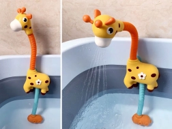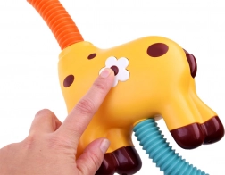 Csak merítsd vízbe az alsó, szivattyús részt, és nyomd meg a virág alakú gombot – a zsiráf szájából finom, a gyerekek számára kellemes vízsugár folyik.
