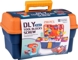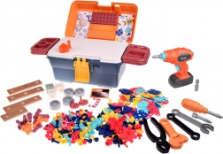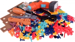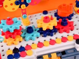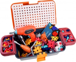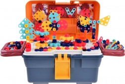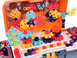 Színes, hordozható műhely kis barkácsolóknak, amely 298 darabot kínál csavarozáshoz, építéshez és alkotáshoz. A lyukacsos munkafelülettel és rendezőkkel ellátott bőrönd tartalmaz gyerek fúrót/csavarhúzót, csavarokat, anyákat, fogaskerekeket és építőelemeket 2D és 3D modellek készítéséhez. Fejleszti a finommotorikát, a logikus gondolkodást és a kreativitást 3 éves kortól.