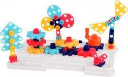 Összekapcsolható kerekek, csavarok és lyukacsos lapok segítségével mozgó modellek hozhatók létre, amelyek serkentik a logikus gondolkodást és a kreativitást.