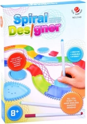 A készlet ideális a türelmet, a kéz pontosságát és a geometria alapelveit fejlesztő tevékenységekhez. Az egyszerű elvnek köszönhetően – a toll vezetése a fogazott kerekeken – a rajzolás könnyű és addiktív, kezdőknek és kis művészeknek egyaránt megfelelő.