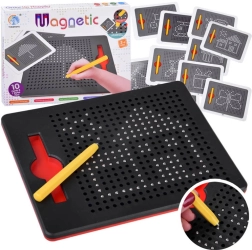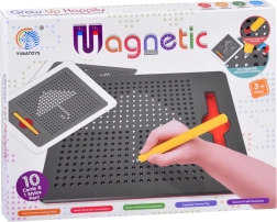 Fedezze fel a szórakozást és a tanulást egyben ezzel a mágneses rajztáblával. A mágneses stylusszal képeket alkothat fém golyókból, amelyek a felszínre emelkednek, és egy egyszerű ujjnyomással könnyedén visszanyomhatók. A csomag tartalmaz sablonokat inspirációhoz, valamint szabad alkotáshoz, amelyek fejlesztik a kreativitást, a finommotorikát, a koncentrációt és a térbeli gondolkodást.