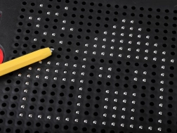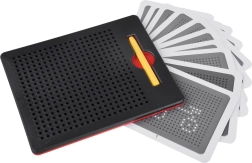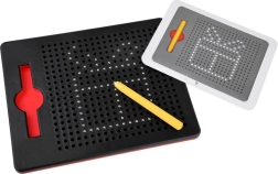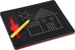 Ez a kompakt mágneses tábla ideális gyerekeknek és felnőtteknek egyaránt, mint pihentető és egyben oktató eszköz. A mágneses hegy a lyukakba húzza a golyókat, így éles pontok jönnek létre, amelyekből könnyen kirakhat képeket, számokat vagy betűket. A kész motívumot egyszerűen törölheti a golyók visszanyomásával – a tábla így végtelenszer újrahasználható.
