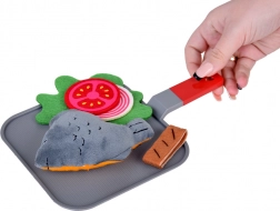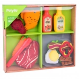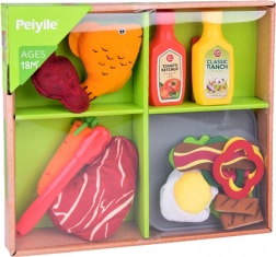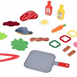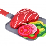 Steaktől és haltól a tojásig és szalonnáig, valamint paradicsom, hagyma, saláta, répa és paprika – a szett játékos formában segíti az élelmiszerek megismerését és a kiegyensúlyozott táplálkozást.