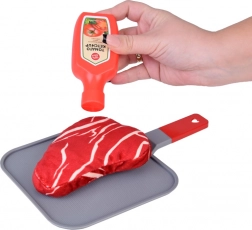 A csomagban praktikus kiegészítők – serpenyő és csipesz – valamint színes élelmiszerválogatás található: steak, hal, csirkemell és csirkecsíkok, tojás, szalonna, paradicsomszeletek és hagymakarika, salátalevelek, répa, paprikák és kétféle szósz (ketchup és univerzális öntet). Így a gyerekek számtalan „receptet” készíthetnek, és gyakorolhatják a szakács szerepét.