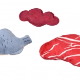 Ez a gazdag textil élelmiszer-készlet örömet visz a szakácsosdiba. A valósághű formák és színek segítik az élelmiszerek természetes megismerését és a tálalási, főzési készségek fejlődését. A puha anyagok kíméletesek a gyerek kezekhez, és ideálisak a mindennapos játékhoz.