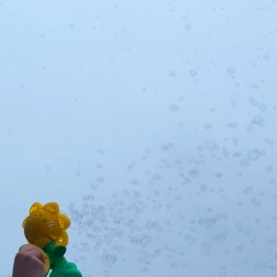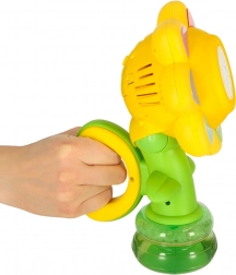Ez a gyerekeknek készült virág alakú buborékfújó ideális társ a kerti vagy otthoni játékokhoz. Az automatikus buborékkiadás biztosítja az egyszerű kezelhetőséget, egy gomb megnyomása azonnal gondoskodik a szórakozásról.