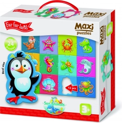 A Far Far Land maxi puzzle 'Tengeri állatok' szórakozást és tanulást nyújt egy csomagban. A gyerekek fejleszthetik képességeiket, mint például a finom motorika és a logikus gondolkodás.