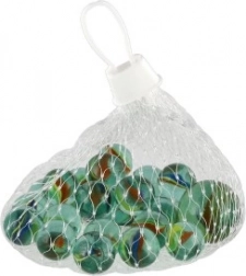 Klasszikus üveggolyó-készlet kicsiknek és nagyoknak, a hagyományos játékok rajongóinak. A hálóban különböző méretek színes, szivárványos mintázattal, ideális udvari játékhoz és dekorációnak is. Fejleszti a pontosságot, a fair play küzdőszellemet és a finommotorikát. A csomag tartalma 24 + 1 golyó.