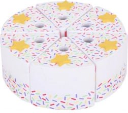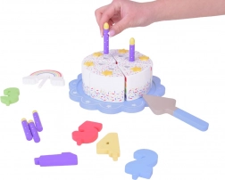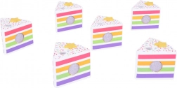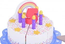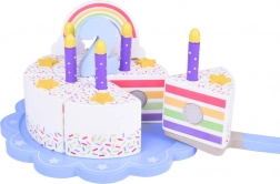 A torta tetején egy levehető színes szivárvány van, amely varázslatot kölcsönöz az egész készletnek. Minden tortaszelet helyet biztosít egy gyertyának, így tökéletes választás születésnapi játékhoz.