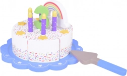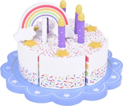 Bemutatjuk a fa szivárványos születésnapi tortát, amely végtelen órányi szórakozást biztosít a gyerekeknek. Ez a játéktorta hat színes darabjával igazi csemege, amelyet a gyerekek szeletelhetnek és újra összerakhatnak.