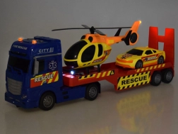 Engedje gyermekeinek, hogy belemerüljenek a mentési akciók izgalmas világába ezzel a kiváló készlettel! A szórakozás valósághű szcenáriókat tartalmaz járművekkel, mint például az eltávolítható platformmal rendelkező teherautó, helikopter és személyautó.