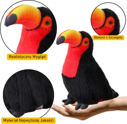 A kiváló minőségű plüss rendkívül puha és kellemes tapintású, így a tukán tökéletes társ a mindennapi öleléshez.