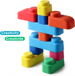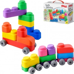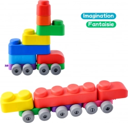 Szerelőkészlet Far Far Land szórakoztató és kreatív játék gyerekeknek! Tartalmaz 21 puha tömböt és 16 kerekeket, amelyek támogatják a gyerekek motorikus és képzelőerő fejlődését.