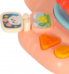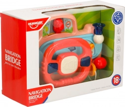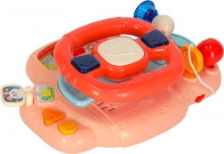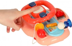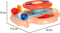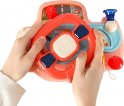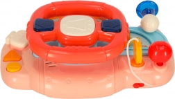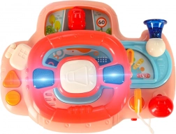 Az interaktív gyerekkormány remek játék kreatív szórakozáshoz otthon és útközben egyaránt. A gyermek forgathatja a kormányt és „vezethet” egy kis autót a műszerfalon, miközben motorindítás, duda, fényjelzéssel kísért irányjelzők és vidám melódiák kísérik. A hangerő beállításának köszönhetően a játék könnyen igazítható a környezethez.
