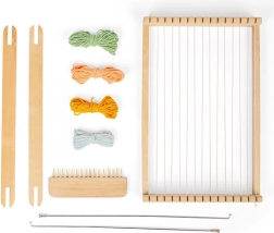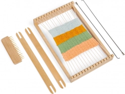 Ez a fa szövőszék ideális a gyerekek számára, akik szeretnék kipróbálni a kézi szövést. Kiváló minőségű, FSC® tanúsítvánnyal rendelkező anyagokból készül, amely biztosítja a fenntartható erdőgazdálkodási gyakorlatokat. Az eszköz nemcsak a kézügyességet, hanem a koncentrációt és a türelmet is fejleszti.