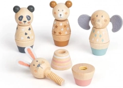 A fából készült csavarozható állatfigurák célja a finommotoros készségek, ügyesség és kéz-szem koordináció fejlesztése. Minden állat figura csavarozható testrészekkel rendelkezik, amelyek lehetővé teszik a gyerekek számára, hogy a testeket a megfelelő fejekkel kombinálják, vagy teljesen új, egyedi kombinációkat hozzanak létre.