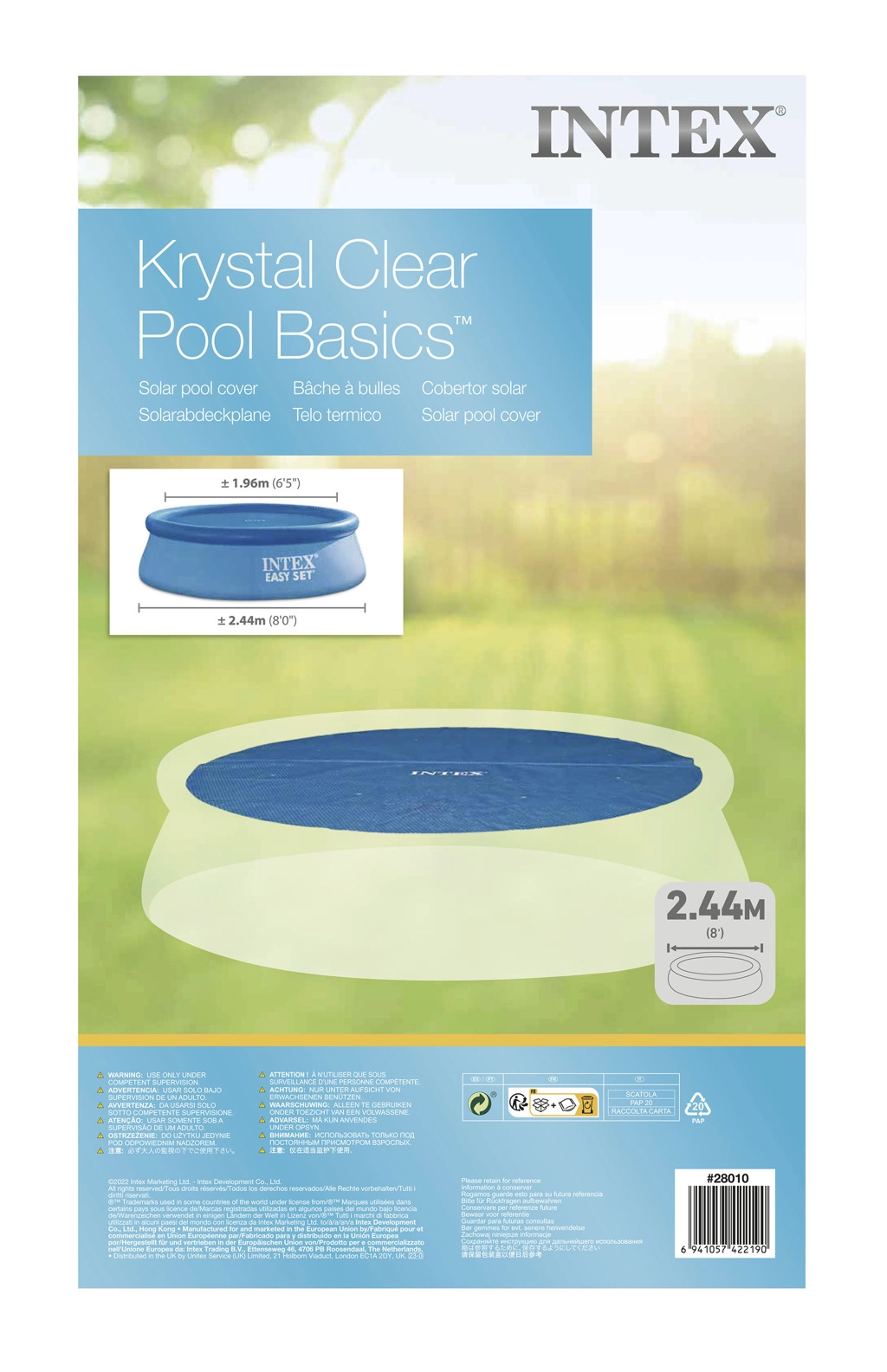 Az INTEX napenergiás takaró ideális kiegészítő a fürdőszezon meghosszabbításához. A speciális levegős (buborékos) fólia átengedi a napsugarakat a vízbe, és segít természetes módon felmelegíteni azt. Egyúttal hőszigetelő gátat képez, amely mérsékli az éjszakai lehűlést.