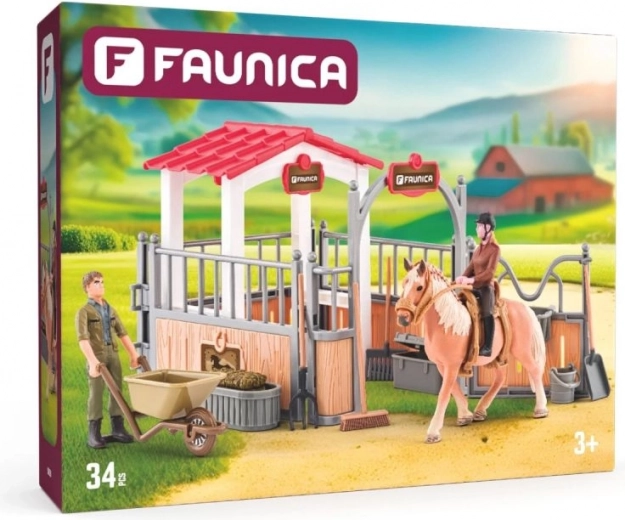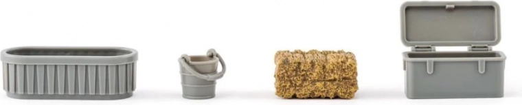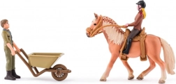 A készletben minden megtalálható a ló gondozásához: karám/előtető, ló lovassal, talicskás gazda és apró kiegészítők. A ló 12 × 10 cm-es mérete ideális a gyermekkezekhez.