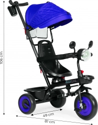 Az ECOTOYS 3 az 1-ben univerzális gyerek háromkerekű a gyermekkel együtt nő 6 hónapostól 6 éves korig. Kínál 360°-ban forgatható ülést, masszív acél vázat, karbantartást nem igénylő EVA kerekeket és levehető napellenzőt. A kényelem és biztonság érdekében megtalálható rajta a szülői tolókar, védőkorlátok, lehajtható lábtartók, két kosár és interaktív fény dallamokkal.