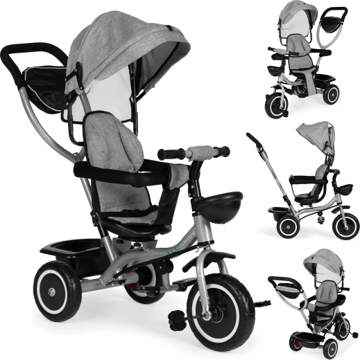 Gyerek tricikli babakocsi 2 az 1-ben, forgatható ülés és összecsukható napellenző, szürke ECOTOYS