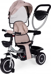 Az ECOTOYS tricikli egyesíti a babakocsit és a futóbiciklit. A forgatható ülésnek köszönhetően a gyermeket a szülő felé nézve vagy menetirányba lehet utaztatni. A szülői tolókar össze van kötve a kormánnyal, így az irány teljes mértékben kézben tartható, miközben a gyermek a lehajtható lábtartókon pihen.