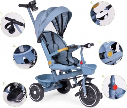 Ez a multifunkciós tricikli ötvözi a babakocsi kényelmét és a klasszikus tricikli szórakozását. A forgatható ülés lehetővé teszi a kisebb gyermekek szülő felé fordítva történő utaztatását, a nagyobbak pedig élvezhetik a menetirányú ülést. A stabil acél szerkezet, az állítható háttámla és az állítható kormány minden fejlődési szakaszban ergonomiát és biztonságot nyújt.