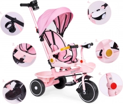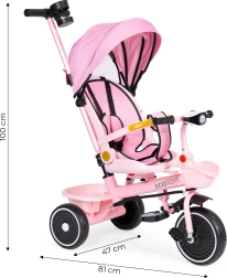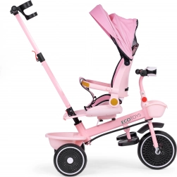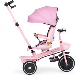 Az univerzális 2 az 1-ben gyerek tricikli a ECOTOYS márkától együtt nő gyermekével 6 hónapostól 6 éves korig. 360°-ban forgatható ülés, összecsukható napellenző, acél váz, karbantartást nem igénylő EVA kerekek és szülői irányítás jellemzi. A maximális kényelemről és biztonságról ötpontos biztonsági öv, védőkorlát, lehajtható lábtartók, tároló kosarak és fény hangokkal gondoskodik.