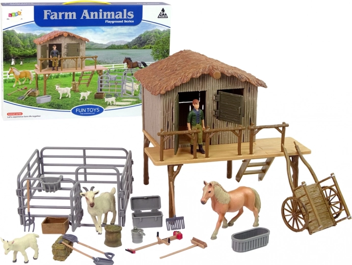- A készletben szereplő állatok: ló, gazda, kiskecske