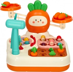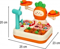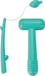 A készlet része egy kalapács és egy horgászbot, amelyek segítik a gyermekeket a finommotorika és a koordináció fejlesztésében.