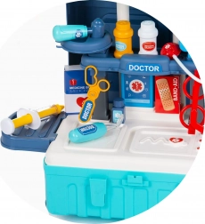 A gyermek 3 az 1-ben orvosi készlet nagyszerű lehetőséget kínál a táska mobil kórházzá vagy orvosi asztallá alakítására. Ez a multifunkcionális készlet támogatja a gyermekek képzelőerejének és kreativitásának fejlődését, mindezt szórakoztató formában.