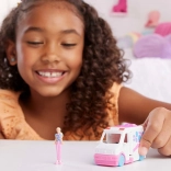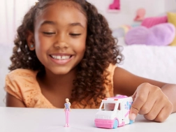 A szett tartalmaz egy miniatűr babát, amely derékban hajlítható, így kényelmesen ülhet a fülkében és a belső térben is. A gördülő kerekek és a nyitható oldalpanelek támogatják a valósághű játékot és fejlesztik a gyerekek fantáziáját. Remek választás a BARBIE rajongóinak és a miniatűrök gyűjtőinek.