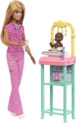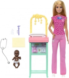 Fedezze fel az orvosi kalandok világát, amikor Barbie gyermekorvos bőrébe bújik! Ez a játékkészlet tartalmazza Barbie babát rózsaszín orvosi ruhában és kicsi páciensét. A gyerekek élvezhetik a játékot, amely fejleszti az ápolási és táplálkozási készségeket.