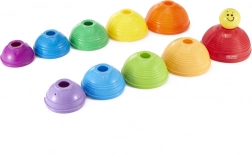 Minden csésze számozott és különböző színekben van, ami támogatja a tanulást.