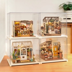 A DG sorozat miniatűr házikóihoz készült (a DG12 kivételével). A 22 × 22 × 22,5 cm-es belső tér a jelenetek többségéhez ideális, míg a 28,7 × 23,7 × 24,4 cm-es külső méretek stabilitást és védelmet biztosítanak. Az okos kialakításnak köszönhetően a vitrinek akár 6 rétegben egymásra helyezhetők, így értékes helyet takaríthat meg a polcon vagy az asztalon.