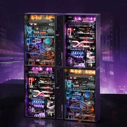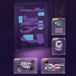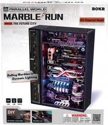 Alakítson ki otthon lüktető sci‑fi panorámát gyors lejtőkkel felhőkarcolók, csővezetékek és gyárak között. Az automata lift visszaküldi a golyókat a rajtvonalhoz, a neon LED világítás pedig cyberpunk hangulatot kölcsönöz a jelenetnek. Egyetlen gombnyomással válthat a „nyüzsgő nappal” és a „színes éjszaka” között.