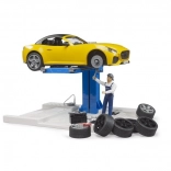 A szerelő figura kulccsal és nyomásmérővel, valamint a valósághű roadster támogatják a kreatív szerepjátékot és a finommotorika fejlődését.