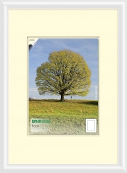 A képkeret élekkel csiszolt üveget tartalmaz 2 mm vastagságban és alap keretet két akasztóval, amelyek lehetővé teszik a függőleges és vízszintes felakasztást. A műanyag keret profilja 21 mm magas és a keret formátuma megfelel a standard A2 (59,4 x 42 cm) méretnek.
