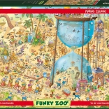 Szórakozz az HEYE márka Őrült Állatkert sorozatának eredeti puzzle-jével, melyet Marino Degano humorosan illusztrált. A „Sivatagi kiállítás” motívum 1000 darabbal érkezik, tele részletekkel és humorral. A sorozat egyes motívumai tetszőlegesen kombinálhatók egy nagy állatkertté, mivel a képek szélei zökkenőmentesen illeszkednek egymáshoz. Ideális a minőségi puzzlek, a szórakozás és a gyűjtői motívumok kedvelőinek.