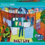 Puzzle Napi élet: Az udvaron 1000 darabkás változatban nagyszerű választás a kirakós játékok szerelmeseinek, akik szeretnek lebilincselő képekkel foglalkozni a mindennapi életből.