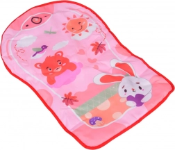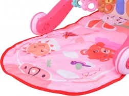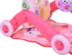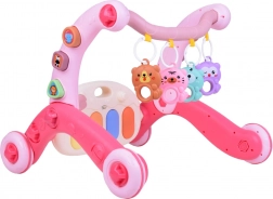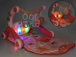 A multifunkciós 3 az 1-ben szett együtt nő gyermekével: a kényelmes játékoktól a puha szőnyegen, a hangok felfedezésén át a világító zongorán, egészen az első lépésekig a stabil tolható járássegítővel. A színes függő játékok és a pasztell formaberakó kockák támogatják a fogást, a szem–kéz koordinációt, valamint az alak- és színfelismerést.