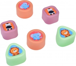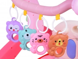 Aranyos, csörgő állatos karikák ösztönzik a nyújtózkodást, erősítik a finommotorikát és a szem–kéz koordinációt.