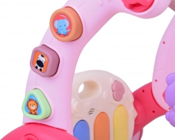 Az interaktív panel gombokkal, dallamokkal és hangokkal bátorítja a felfedezést, és fejleszti a hallást és a kreativitást. A járássegítő széles alapja, a gumírozott kerekek és a lekerekített formák biztonságot és stabilitást nyújtanak az állás és a járás gyakorlásakor. Az összeszerelés gyors és szerszám nélkül elvégezhető, így azonnal kezdődhet a játék.