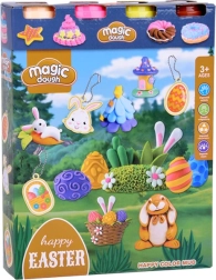 Ez a színes alkotó készlet mindent tartalmaz, amire a gyerekeknek szükségük van bájos húsvéti díszek készítéséhez. A 4 tégely gyurmának és az okos tetőknek köszönhetően, amelyek állatfigurás formákként szolgálnak, pillanatok alatt készülhetnek nyuszik, csibék és díszített hímes tojások. A nagy tojás alakú forma változatos motívumokat kínál (nyuszi, répa, tojások, csibe, kosárka), amelyet két további forma egészít ki levelekkel, virágokkal, felhőcskékkel és édességekkel.
