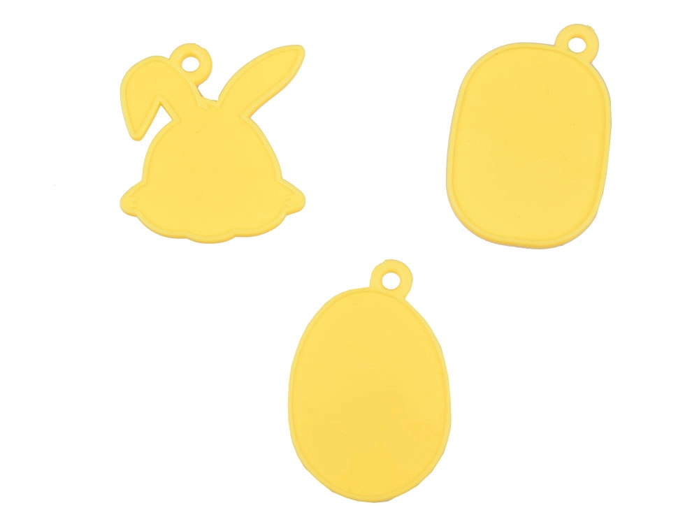 Három kétoldalas függődíszt húsvéti motívumokkal könnyedén feldíszíthetsz matricákkal – nagyszerű apró figyelmesség a családnak és a barátoknak.